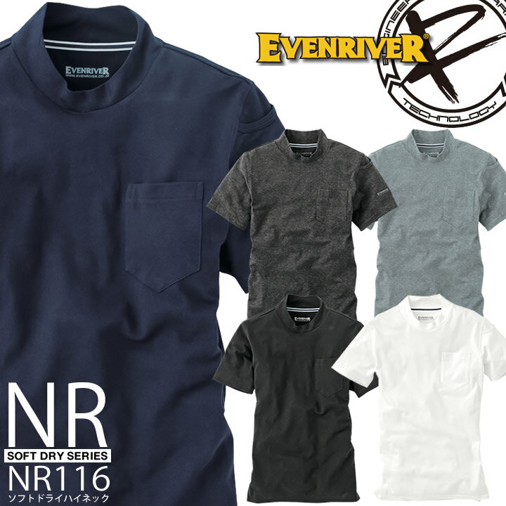 【即日発送】イーブンリバー ソフトドライ ハイネック半袖シャツ NR116 吸汗速乾 ドライ 作業服 作業着 ソフトドライシリーズ【春夏向け】【送料無料】