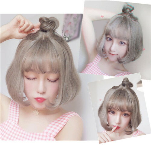 【期間限定!マスクプレゼント中】【フリーサイズ】フルウィッグ 超自然 スモーキーグレー普段使い お団子 ショート ボブ かつら エクステ 耐熱 全5色 原宿系 ネット付 dp183c0/代引不可